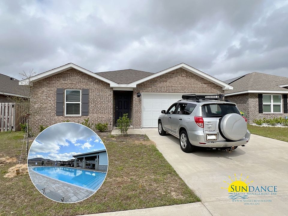 Located in the desirable Patriot Ridge community of Crestview, this beautifully maintained 4-bedroom, 2-bathroom home offers access to a community pool and neighborhood sidewalks. It features an attached 2-car garage along with additional driveway parking and this property is a true must-see! The home boasts a split-bedroom floor plan with spacious main living areas, recessed lighting, vinyl flooring throughout the main living areas, and cozy carpet in the bedrooms. The modern kitchen includes granite countertops, stainless steel appliances, a breakfast bar, and a pantry, perfect for both everyday living and entertaining. The primary suite features a dual vanity and a large walk-in closet, while three additional bedrooms share a full hall bathroom. A laundry closet with a washer and dryer is also included for added convenience. Outside, enjoy a front covered patio, an open back patio, and a fully fenced backyard ideal for relaxing or entertaining. Come see what makes this home stand out!