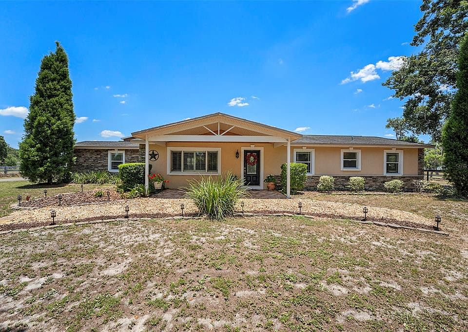 Prepare to be captivated by this exceptional property, perfectly situated on 2.4 acres in Plant City, Florida. This expansive estate features a secure gated driveway, a private pond, multiple pastures, and a magnificent 4,000 sq. ft. barn. The barn is equipped with two stalls, a tack room, a wash stall, and an abundant second-level storage area. It also serves as an exceptional venue for hosting large events, such as weddings and parties. Step inside the beautifully updated 3-bedroom, 2-bathroom single-family home, where modern design meets serene country living. The open floor plan seamlessly combines the living room, office/den, kitchen, and outdoor entertaining area. The kitchen is a chef’s dream, featuring stylish GE Slate appliances, solid wood cabinets, granite countertops, a large island, and a rustic copper farm sink. Adjacent to the kitchen, through the French doors, is the screened outdoor living space, complete with a hot tub—providing the perfect place to unwind after a long day of riding. The primary bedroom is generously sized and offers an updated ensuite with a large walk-in shower. The additional bedrooms and bathroom have also been completely remodeled to match the home's sophisticated style. Located just 30 minutes from Tampa and in close proximity to I-4, this exceptional property offers a blend of luxury, functionality, and breathtaking beauty. Don’t miss the chance to make this extraordinary estate your own.
