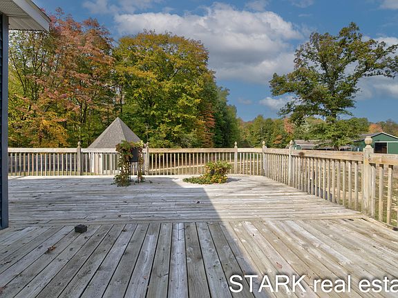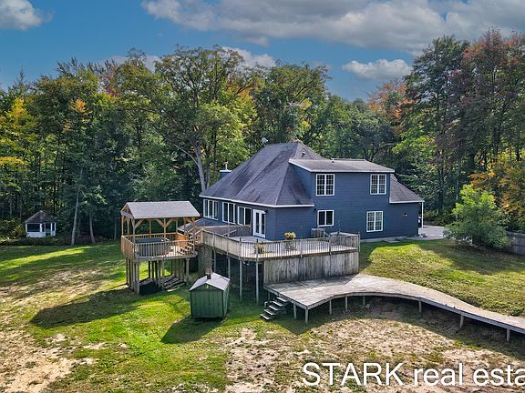 Looking for privacy and peace and quiet? Look no further! Beautiful custom home on 20 acres in Fruitport with everything you're looking for. 600 feet black asphalt driveway for intense privacy and lots of wildlife. This 2 story home has 5+ bedrooms, 4 bathrooms, office, bonus living room or bedroom, upstairs, and fully finished walk-out lower level with 2nd kitchen. The main floor has soaring ceilings with walk-way, large custom gourmet kitchen with high end appliances and 2 large center islands. Many windows facing the backyard with winding creek, deck, and covered hot tub. There is also a huge 40x60 pole barn with lean-tos, 4 livestock stalls and even a 10x19 walk-in cooler used for butcher shop. The home also has a back-up wood burner system and whole home Generac Generator.