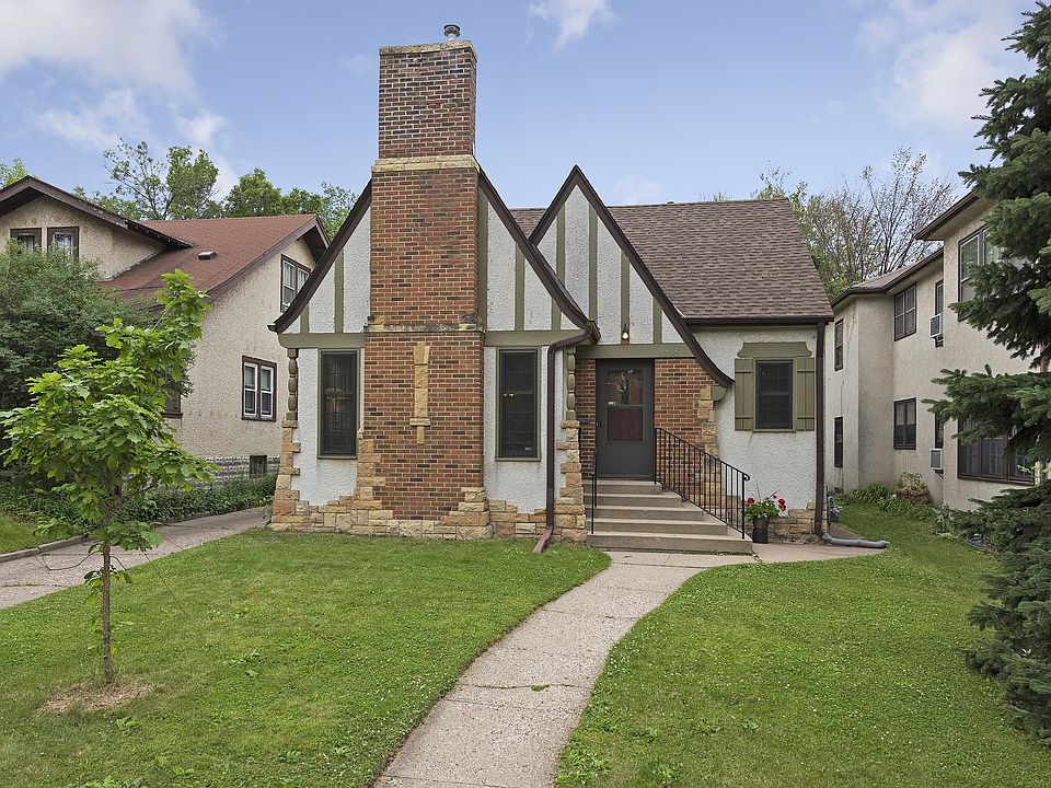 Charming Tudor home nestled into great Lynnhurst neighborhood! Outstanding mix of character & recent updates. Designer kitchen remodel w/ center island, pendant lighting, solid surface counters, full-size cabinets, new app's & bonus bar area w/ built-in seating. Stately stucco & brick exterior, original HW floors, arched entries, & vintage tile bath. Huge walk-in closet, new stone patio, opportunity to finish basement. Stellar location close to shops, restaurants, lakes, Uptown, Downtown & 35W!