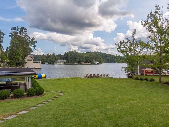 This 7BR, 7ba and 2 half bath Lake Burton home rests on a level Fee Simple lot with a view of Billy Goat Island and the July 4th fireworks. Coveted grassy lot with charming dugout patio offers a unique lake front with 2 stall boathouse and lakefront stone patio. The clean-lined interior is reminiscent of a modern coastal farmhouse with a touch of antique class. The light-filled great room features a stone fireplace, antique beams and shiplap paneling that provide for casual and comfortable lake living. The chef's kitchen was designed with entertaining in mind and includes a butler's pantry that opens to the oversized lakeside screened porch with fireplace that runs the length of the home. Features include: 2 master suites on main, 4 terrace level en suite bedrooms, a bunk room that sleeps 10, family and rec room with billiards, shuffle board, second kitchen, hot tub, and 2 car garage.