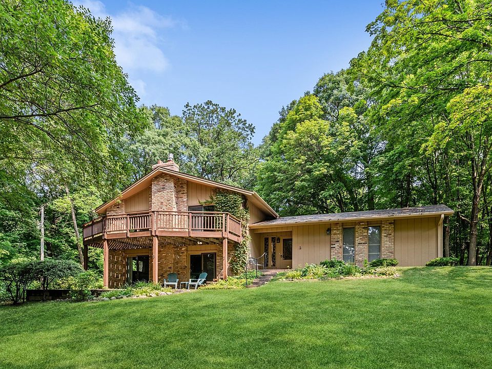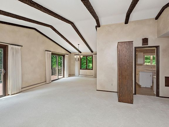 Welcome to your very own oasis in this wonderful, wooded private setting. This 4 bedroom, 3 bath home has a nice open feel the moment you walk in the front door. With a large and roomy landing to greet you, you instantly see the bright, soaring main floor living area. With a vaulted ceiling and two sliding doors to the large deck outside, there is light everywhere here. Imagine your dining table within view of the open living room and large, eat-in kitchen. Two bedrooms on this level, with a powder room and a full primary bathroom.