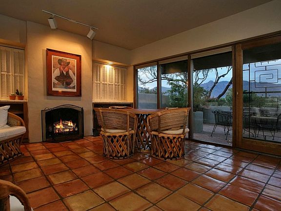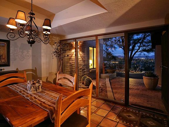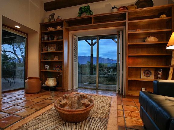 Panoramic Mountain AND City Light views are framed by huge picture windows in this wonderful territorial home full of charm & character. If you can tear your gaze away from the views, the lovely entry leads you into an open and flexible floor plan with high beamed ceilings, Saltillo tile, cozy fireplace & fabulous built in shelves. Kitchen offers stainless steel appliances and a convenient pass-through. Dining area features recessed ceiling detail and twinkling city lights. Covered patio with brick pavers to take in the amazing mountain views. Master features a superb built-in & 3/4 bath. Newer HVAC (2012). Awesome location convenient to just about anywhere you need to go. This special home has been a 2nd home for the sellers and has been "lived in lightly".