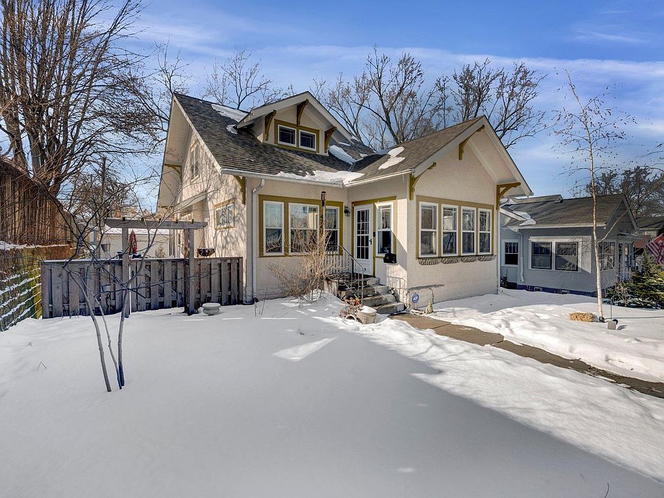 Simply divine Tangletown home! Bright and updated, this home will not disappoint! Featuring a welcoming 3 season porch - perfect for morning coffee, large living room, spacious dining room, updated kitchen, newer roof, stamped concrete driveway, fenced yard, newer HE furnace and water heater, and more! The main level has two ample bedrooms with walk-in closets. The upper-level sports two more bedrooms with walk-in closets. The primary bedroom has a private sitting room perfect for a nursery/dressing room/office. The lower level has plenty of space for a workout room/media room/art studio and tons of storage. Great location with walkability to schools, shopping, and easy access to HWY 35W.