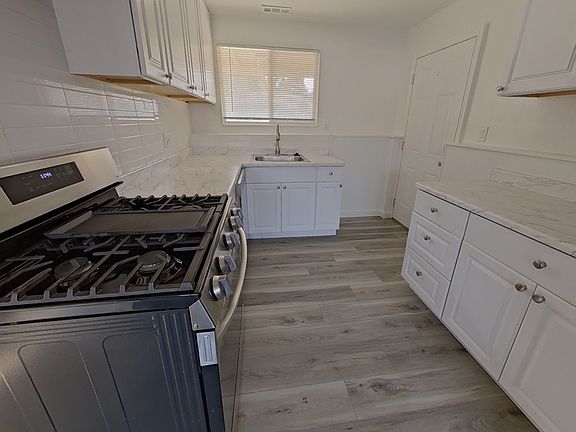 New flooringFresh paintNew cabinetsBright and inviting kitchenPlenty of storageElegant countertops
