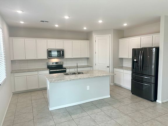 Open floor plan with 1712sf 3 Bedrooms and 2 1/2 baths. Highly desirable Superstition Vistas gated community features pool, state of the art community center, pickle ball courts, dog park, mini putt, cornhole, playgrounds. Gorgeous floor plan features large center island kitchen with pantry, stainless appliances and center island with granite counters. 9' ceilings, lots of tile and neutral colors. Master with huge bathroom and walk in closet. Full bath upstairs for the additional bedrooms Half bath downstairs.
