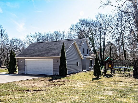 Close to Silverceek Metro Parks, this one of a kind 2013 custom built, move in ready home is awaiting its new owners! Upon arrival, you will be greeted by an inviting wrap around porch with built in can lights. Perfect for sipping coffee in the morning or iced tea in the evening. Open the front door into a living room that boasts incredible high ceilings, floor level and high windows bring in lots of natural light. Eat in kitchen has maple cabinets, granite countertops gas stove, stainless steel appliances (2024) and an island with granite counter top. First floor primary bedroom with slider door that takes you out onto a concrete patio. Area also includes walk in closet, ensuite bathroom with double vanities. Finishing off the first floor is a half bath and laundry/mud room with washer hookup, dryer with electric and gas hookup along with a wash basin. Open the door to an oversized garage with built in shelving, hot & cold water and door that takes you to backyard patio. Upstairs you will find two additional bedrooms with ample closet space with newer carpet, full bath and linen closet. Newer carpet (2024). New water softener, new paint and garage shelving (2024). Septic has aerator system and has been serviced on a routine basis. Last serviced on 2/27/25. Filters cleaned, pumps and floats inspected and unit disinfected. Pumping not needed at this service call. Home inspection has been done and is available to review upon request. App to monitor water softener, furnace and four cameras (2024) can be set up on new owners phone for free. Owner offering a one year HSA home warranty as well as a one year classic service agreement with ASI Environmental.