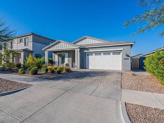 This lightly lived in, amazing and functional Sage floor plan built by Ashton Woods is now available without the wait BUT with all of the upgrades. Over $100k in upgrades in this home between the design studio when built and over the last 2 years. This split floor plan features 4 bedrooms, 3 bathrooms with a teen room and 2.5 car garage. Wood look plank tile throughout the main living areas of the home with brand new carpet in the bedrooms. The upgraded gourmet kitchen features white shaker cabinets, with an accent island, quartz counter tops, stainless steel appliances with extended cabinetry for a buffet/coffee bar. The kitchen overlooks the dining area and great room. Custom wood accent features such as an electric fireplace in the great room and master bedroom as well as a shiplap wall upon entering the home and decorative island. The fully landscaped backyard is ready to be enjoyed with an extended paver patio and grass. The amazing community of Eastmark features parks, playgrounds, a pool, sports complex, farmer's market, skate park and so much more. Do not miss this opportunity to call this one HOME.