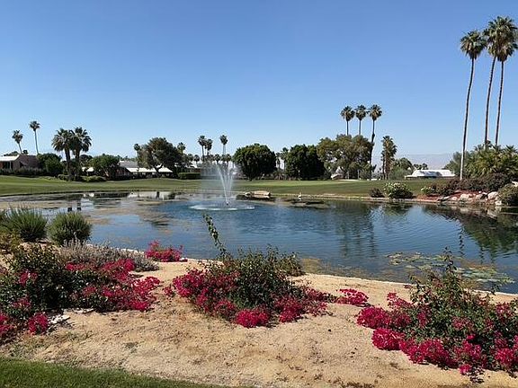 Welcome to Marrakesh Country Club, ''The Jewell of the Desert''. Designed by John Elgin Woolf, thisl large two Bedroom , two Bathroom Villa has a spectacular views to the north. It overlooks a tranquil pond with a fountain & waterfall, and the 7th green and fairway of the exceptional 18 hole Marrakesh executive Golf Course. It has mountain views in two directions. The front stucco walled patio is unusually large which could potentially accommodate expansion of the floor plan to a full 3 bedroom 3 bathroom home. This unique '' Interior '' location is very quiet, lacking drive by street traffic and close by golf course traffic. A wide open green space to the west also has potential for an extended patio. This C floor plan has many upgrades. Double pane 10 foot sliders (added in 2024), an electric retractable full sized awning on the golf course adjacent patio, scraped ceiling, flooring upgrades, and a second air conditioner have all been added. The recently remodeled club house features formal and casual dining,with spectacular mountain and golf course views, a fitness center, a fully staffed golf pro shop, bocce ball courts, croquet court, and much more. Come and take a look. This is your chance to become part of the acclaimed Marrakesh community life style.