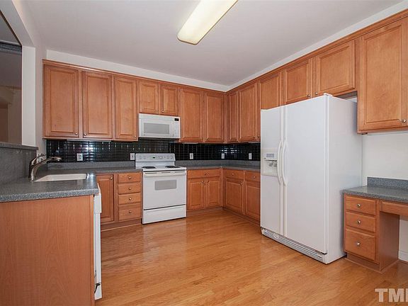 Lovely & Bright move in ready home. Spacious 1st flr Mstr w/trey ceiling, WIC & Glamour bath w/dual vanity, garden tub & sep shower. 1st flr Guest Bdrm or office w/french door entrance & attached full bath. Open living & dining areas w/gorgeous hrdwds & gas log frpl, adjoining Kitchen has solid surface counters, tile back splash, 42" maple cabs & Lrg breakfast area w/access to rear porch. 2nd flr has Lrg Loft, 3rd bdrm & full bath. Enjoy fab comm pool, socials & walking trails, convenient to Crabtree Mall