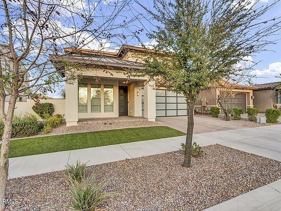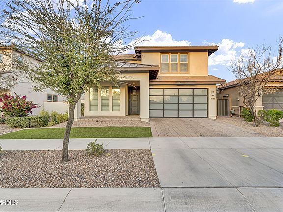 Step into luxury with this former model home in Eastmark! This 4-bed, 3-bath gem with a flex space & loft is packed with custom upgrades & fresh updates, including new carpet & interior/exterior paint. From the decorative garage door to the pavered driveway, the curb appeal is undeniable. Inside, wood shutters, custom cabinetry, & designer wallpaper add style. The gourmet kitchen boasts quartz counters, stainless appliances, a gas cooktop, & bi-fold windows for seamless indoor-outdoor entertaining. The primary suite features an extended walk-in shower, dual sinks, & a spacious closet. Outside, enjoy a covered patio, built-in breakfast bar, & custom metal gazebo. Eastmark offers top-rated schools, community events, playgrounds, a splash pad, & endless ways to connect with neighbors.