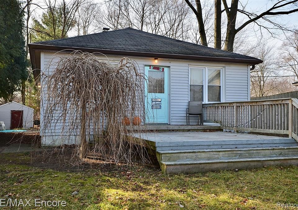 Well maintained and ready to move in this 3 bedroom ranch with Clarkston Schools! Quality craftsmanship and updates over the years; high efficiency furnace, central air, vinyl siding and replacement windows. Spacious kitchen with concrete countertops and cork floors. Plenty of room for dining area in large living room. Hardwood floors throughout. Tile bath with laminate floor. Fully fenced large front yard with gate opening to sidewalk and 16X12 deck. 600 sq ft basement and easy access to large high crawl space - great for storage. All appliances stay. Shed. Lake priv. on all sports Deer lake with beach with lifeguards, kayaking & boat launch. Driveway off side street - Woodhull to immediate left of Scammel. 2nd house on left.