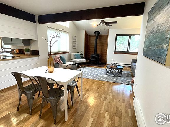 Lovely 2nd floor condo in South Creek. Has outdoor patio/garden area plus upper deck facing west. Newer kitchen appliances and brand new stackable washer/dryer. All windows were replaced (except 1 triangular fixed pane). Detached 1 car garage. Wonderful location near all the south Boulder trails and easy commute to Denver. Vaulted ceilings in living room. Large walk in closet in primary bedroom. Woodstove. Ready for your finishing touches.