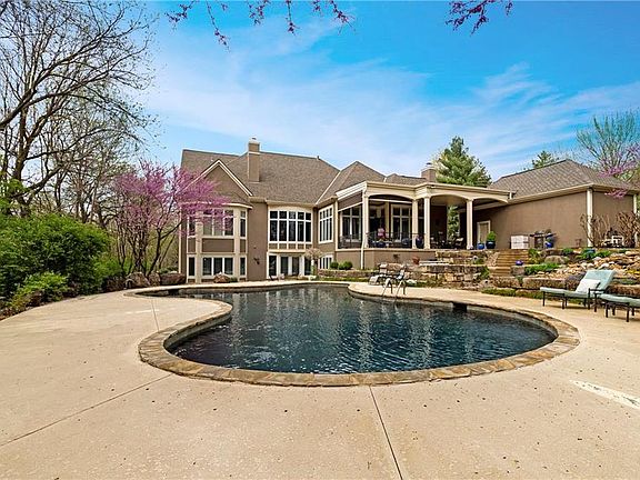 STUNNING PRIVATE BRIDGEWOOD OASIS W/BACKYARD PARADISE! Over 6,000sqft of interior living space with upgrades throughout including brick/stone highlights, large kitchen w/massive island and open plan. 1st floor master retreat with huge mstrbath, steam shower and oversized walk-in. Finished walk-out basement w/mirrored gym, wet bar, bath, large bedroom suite, trophy room. A MUST SEE multi-tiered quiet backyard featuring large pool, Jacuzzi, waterfall and spacious entertaining area. Award winning Blue Valley Schools.