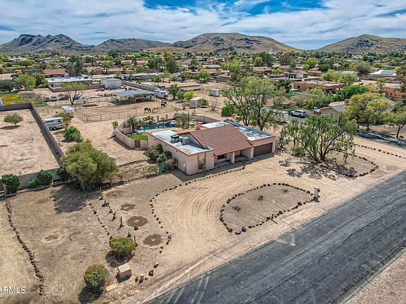 Rare opportunity to own a one acre plus horse property in a desirable North Phoenix neighborhood and no HOA. Equestrian setup complete with 4 lighted & covered 16'X16' stalls, 12 foot breezeway, lighted 100'X68' arena/turnout, round pen plus bonus 40' arena. Equestrian area is fully fenced/walled in with RV gate. Surrounded by million $ homes, this 1979 residence is a diamond in the rough promising great possibility. Double door entry into tiled foyer leads to dropped living room with cathedral ceiling. Kitchen is the very heart of the house and is open to the family room with brick fireplace & the adjacent dining area. Master BR with full bath & separate exit to the outdoor covered patio, heated salt water pool with water feature plus jacuzzi all enclosed by a privacy wall. Click more. Three secondary bedrooms share a 3/4 bath with double sinks. Extras include: alarm system, dog run with dog door, fruit bearing citrus trees with auto waterers, grassy area by the pool, Pentar SAM colored pool lights and a free standing 8'X20' Conex for storage. **Please note that this property has a Glendale Post Office zip code, but is taxed and serviced by City of Phoenix.**