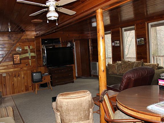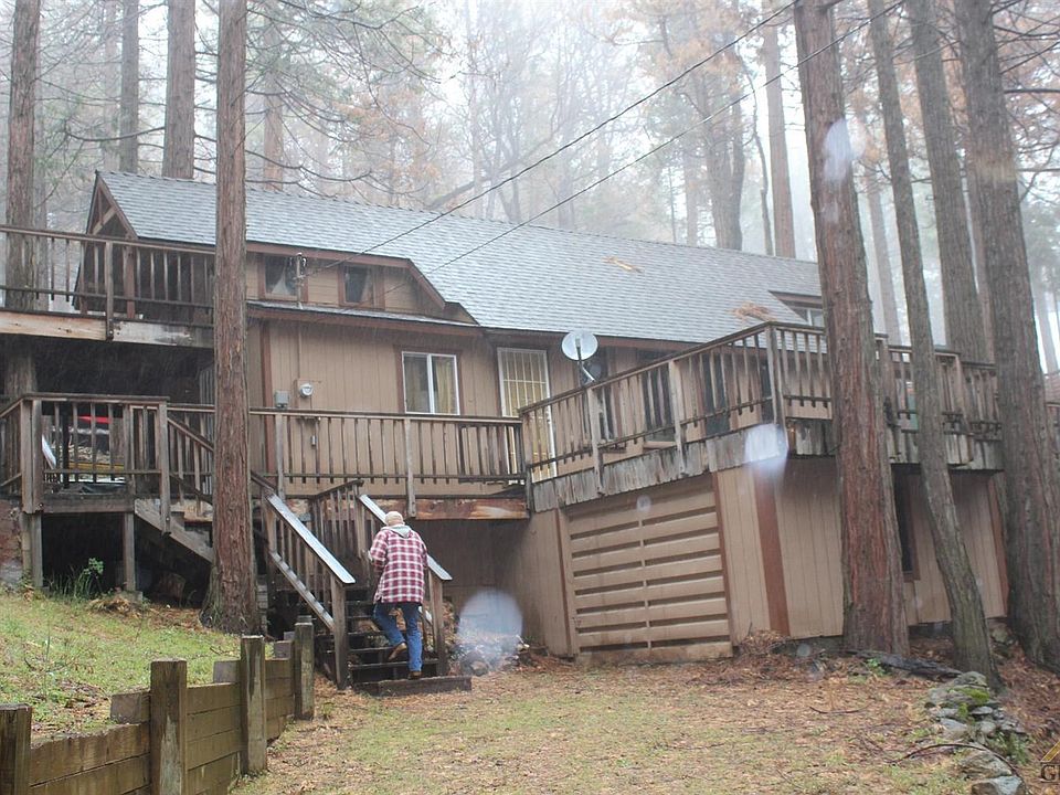 Great location for this cabin nestled in the tall pines and cool mountain air. Has large loft and updated kitchen with tiled countertops. Kitchen has island. This cabin has great potential. Two sleeping areas on top level. Wonderful access to the National Forest. Stone fireplace and delightful wood interior. Large deck and firepit area. Main road is currently snowplowed by county. Don't miss this one.