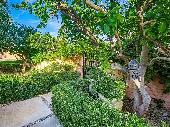 Nestled in prestigious Marrakesh Country Club, this Hollywood Regency Villa captivates from the moment you arrive. Enter through wrought-iron gates into a south-facing courtyard, landscaped in the timeless style of an Italian villa, and step through the iconic double doors. Remodeled in 2018, this three-bedroom, three-bathroom, 2,427 sq. ft. Plan D--the largest of the four original floor plans--radiates sophistication from the elegant foyer onward. The living room, anchored by a vintage white stone fireplace with intricate molding, opens to serene north terrace and golf fairway views. In the family room, a floor-to-ceiling patio door and window frame the enchanting west-side terrace, bathing the space in natural light. The chef's kitchen, a masterpiece with imported Brazilian quartzite countertops and custom French blue cabinetry, offers ample room for intimate dinners or grand gatherings. Two luxurious ensuite bedrooms serve as tranquil retreats, paired with spa-inspired bathrooms. A cozy guest bedroom with courtyard access and a chic powder room enhances the guest experience. Every detail of this refined residence invites both quiet reflection and vibrant celebrations. Marrakesh is a boutique country club with an ideal central valley location amongst a few of the desert's finest private clubs. Amenities include 18-hole private executive golf course, tennis, pickle ball, 14 pools and spa, a fitness center, and an active and newly-remodeled club house with fine dining. Marrakesh is near famous El Paseo with all of its elegant boutiques, restaurants, art galleries and coffee houses. Experience Marrakesh -- Book your private tour today