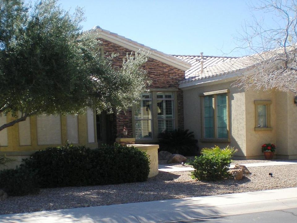 Stunning Sundance model w/3bedrooms, 2baths, located in a secure age restricted, guard-gated community of Trilogy @ Power Ranch. This exquisite home greets you with a beautiful courtyard. Spacious great room open to formal dining & beautiful kitchen plus breakfast nook. Plantation shutters all windows & tile everywhere except carpet in bedrooms. 42'''' top cabs in kitchen, 36'''' lower cabs in bath. Ceiling fans throughout. Block courtyard in front & extended backyard patio - perfect for entertaining. Extra cabinets in inside laundry room. 2-1/2 attached garage. Community offers golf course, 3 heated pools, lighted tennis courts, fitness center, & clubhouse all in this Phoenix suburb of Gilbert.