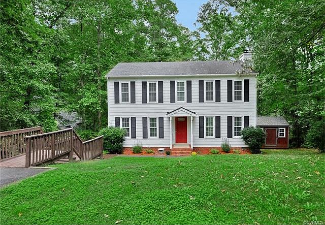 Fantastic colonial on half acre lot! Eat-In kitchen features bamboo flooring, Recessed lighting, Pantry and Refrigerator! Open Great Room with columns, fireplace and French Doors to Deck! There is also a dining room (or office) on the First Level! Crown Molding Master Suite has his and her closets (1 walk-in), plus a bath with tile tub/shower, granite vanity! 2 more nice sized bedrooms with plenty of closet space, upstairs laundry and Hall bath! Additional features include recessed lighting, paved driveway, Wide Slat Blinds, Ceiling Fans, Detached Storage Shed! AC replaced in 2013! Dimensional Roof! Private Yard!