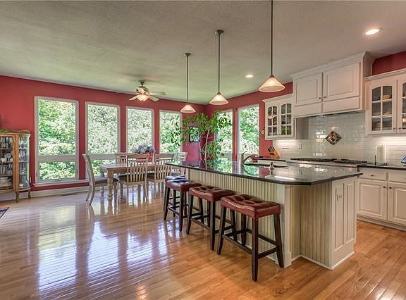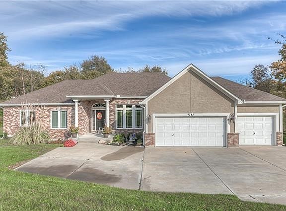 Picturesque Setting on Treed Private 1.1 Acre Lot! True Ranch w/ 3 Bedrooms on Main Level! New 40 year Class 4 High Impact Composition Roof! Kitchen w/Huge Island, 8' Walk In Pantry, Coffee Bar & Custom Cabinets. Thermador - Professional Series Built-In Gas Cooktop! Kitchen All Open to Great Room, Breakfast Area & Wall of Windows Overlooking Trees & Wildlife! Spacious Deck & Patio of Added Entertaining Space! Deck has New Decking! Home is Just Shy of 4,000 Square Feet of Finished Living Space! Lovely Master Suite w/Tray Lighted Ceiling. Master Bath w/Jacuzzi tub, Walk in Shower, Extra Large His/Her Sides in Closet, & His/Her Vanities! The Master Suite is on the Back Side of the House too! 9' and 11' Ceilings Main Level! 3 car garage! Large Laundry/Mud Room Off Garage w/ New Luxury Vinyl Plank Flooring! Huge Pantry! GO CHIEFS! Entertain your Friends in the Walkout Finished Basement! Rec Room w/Projector & Speakers! Plus Wet bar, Gaming area, Bedroom & Full Bath! 2 Large Storage Rooms 1st w/9' x 8' Safe Room. Second one 31' x 21' w/Double Exterior Door--Ample Space for Workshop & Lawn Care Tools! Sprinkler System! Don't need all the bedrooms? Easy Office Space on Each Level! This Home's Features are a Rare Find! Homeowner Insurance Discount with High Impact Shingles! Don't Miss Out On This One!