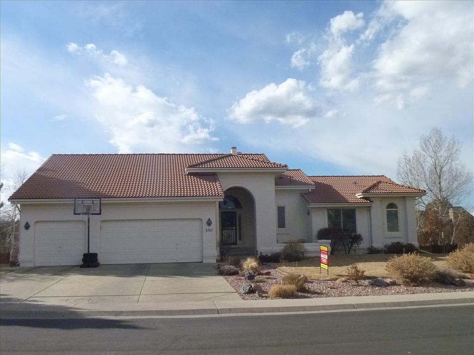 1988 Parade of Homes ranch model, great loc at the end of a quiet cul-de-sac. Spanish-style stucco with red, concrete tile roof for a low maint ext. Covered entry with sitting area. Soaring ceilings, tons of nat light! Volume ceilings and a sunken liv rm w gas frplc. Main flr master w bonus room can be retreat, nursery or office. Open-concept dining room. Kitchen is bright & spacious w large eating space, granite counters, prep island, desk area, trash compactor, resurfaced cabinets & door to the expansive balcony. This outdoor area is perfect for entertaining, w some mtn views & surfaced so patio below remains protected/dry. Patio wired w 220 outlet for spa. Fin bsmt provides 1755 add'l living space & 500 sf of unf storage. 3 add'l bdrms, full bath, large wet bar area with built-in, full-sized fridge and walk-out to the patio & large yard complete this beautiful, sunny area. Radon mitigation in place. Newer furnace & humidifier. 3-car garage fits the largest SUV.