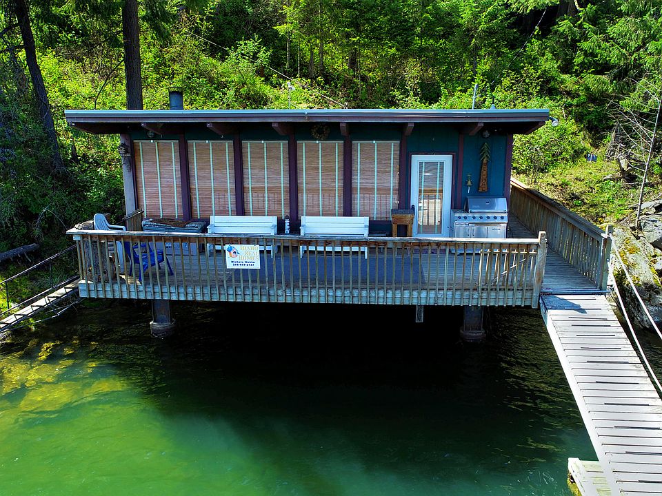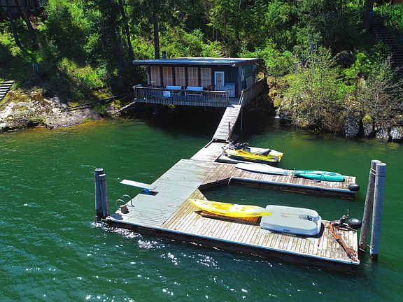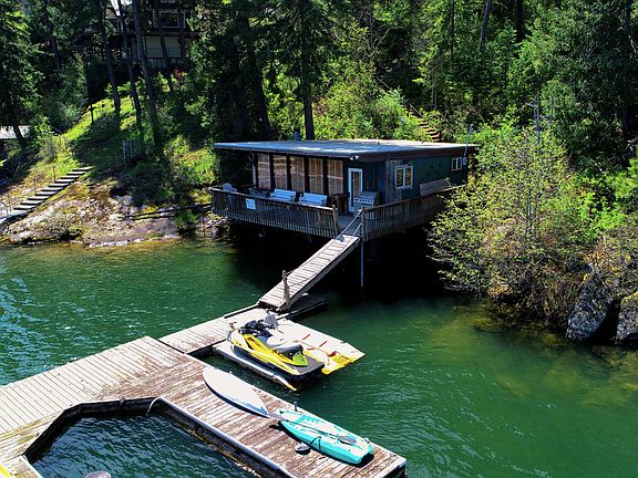 Tucked into a quiet Peninsula in Mica Bay this one of a kind cabin is ready for a new adventure. Built over the water with a unique steel structure. This home is a tank for strength. Home has 2 beds, 1 bath and sells furnished. Roof is a concrete roof used for sleeping under the stars for additional space. Less than 15 minutes to CDA by land the location of this property couldn't be better.