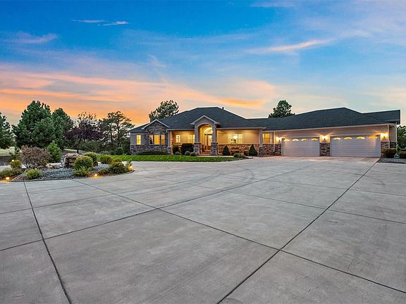 Gorgeous custom home sitting on 5-acre lot in vast and peaceful Sky Rim. The long, private circle driveway leads to this spectacular ranch home built in 2005 by the original and only owners. Oversized 4 car garage includes small workshop/storage closet. This beautiful home has 4 spacious bedrooms and 4 1/2 baths with new hardwood floors, and new A/C system. The spacious, open kitchen includes granite countertops, breakfast bar, custom backsplash and island for entertaining. Master bed includes large closet, fireplace, 5 piece bath and door to the deck. The finished basement is perfect for entertaining and includes a wet bar, wine storage and fireplace Outside there is a deck off the kitchen and walkout basement with large patio. The backyard includes a water feature and fire pit,The home is surrounded by large pine trees, open views and an open space behind that cannot be developed. Privacy, yet minutes to shops/restaurants of Southlands. Do not miss this exquisite, tranquil home!