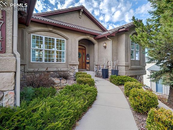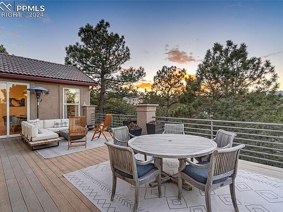 Experience refined luxury and Colorado charm in this University heights main level living masterpiece. Nestled on a large lot, with easy access to trails, open space, and incredible views, and centrally located in the heart of COS allowing easy access to conveniences! This retreat has been beautifully updated with refined and clean lines, and offers an abundance of natural light and an open floor plan. Extended deck boasts incredible views and the mountain and city views are spectacular! Enjoy wildlife and serenity from the privacy and comfort of your deck which has a gas line to the fireplace. Refinished oak floors, freshly painted, updated the main room fireplace. Enjoy fireplace access in 5 rooms! The kitchen is a chef's delight with stainless steel, an induction cooktop, and plenty of counter/cabinet space. An eat-at island along with space for a table and a separate dining room provides plenty of seating! A cozy family room with fireplace is a versatile space; enjoy Deck access from 3 rooms! A cozy office with built-ins and French doors is a dream! The primary retreat is an oasis with double sided fireplace, room darkening shades, 2 walk-in closets, and a 5 piece bath with a seamless spa shower and jetted tub, and it opens to deck. Many wood accents and shelving are from the pine telephone poles from the USAFA grounds, and the large timber mantel is from a CO mining camp! The basement is ideal for entertaining guests with 3 bedrooms, 2 bathrooms, and a spacious rec room has a wet bar. Head outside to a covered patio and hot tub with privacy shade and relax with the sights and sounds of nature. Enjoy surround sound throughout which is compatible with smart phone or TV. Two newer 80 gallon water heaters and 2 furnaces for separate upper and lower level zones. This gorgeous luxury retreat is a rare gem centrally located with easy access to all areas of town, near shopping, entertainment, restaurants, healthcare, and also minutes away from UCCS.