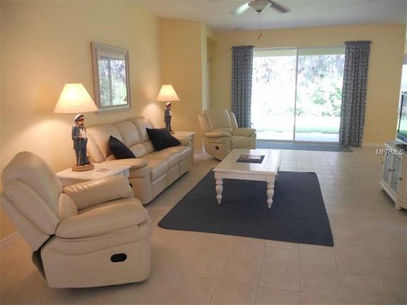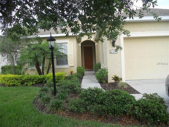 This NEAL home in popular FOREST CREEK is in MINT condition, lived in only several weeks a year! The Blue Sky floor plan features 3 bedrooms plus den with double doors. Very OPEN plan with volume ceilings, Ceramic floors throughout except bedrooms. It's a split bedroom plan for privacy. The Great room is open to the Formal dining room and breakfast bar to the large kitchen with dinette at the end. Lots of Corian counter tops, includes all appliances, washer and dryer. The 16 ft. Master bedroom has walk-in closet plus a double closet, great master bath with 2 lavatories and large WALK-IN Roman shower and private commode room. Lovely window treatments included. Sliding doors in the Great room opens to a covered lanai and VERY PRIVATE view in the back. The 2 car attached garage includes garage door opener and pull down stairs for storage above. Hurricane shutters. Reclaimed water for sprinklers included in maintenance fee. 1 yr. mechanical warranty at closing paid by Realtor. Sold as is only because owners live out of state. Far as they know, everything is in good working condition. FOREST CREEK is a lush, beautifully landscaped, gated community. Has a gorgeous 18 acre lake with fishing dock, gazebos and a canoe/kayak launch area. Community amenities include Clubhouse, Pool, Spa, fitness room, basketball court, playgrounds, paved nature trails and 2 dog parks. It's conveniently located between Tampa/St.Pete and Bradenton/Sarasota, shopping mall and Publix. Note:Taxes will lower with Homestead. Inc.CDD fees.