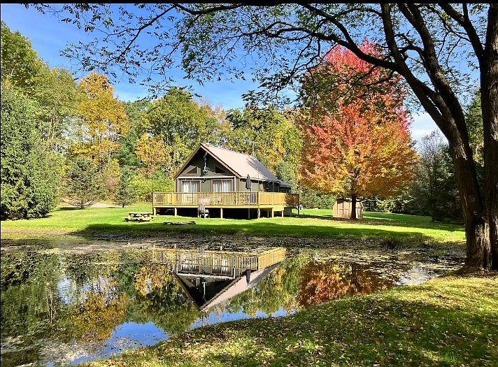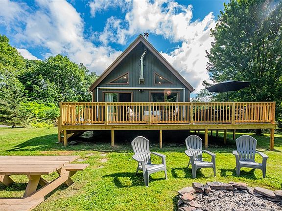 Are you on the hunt for an INCREDIBLE INVESTMENT opportunity or a tranquil retreat for yourself nestled in the woods just minutes away from both Keuka Lake and Canandaigua Lake? Look no further! This stunning home, set on 5 acres, is already a profitable short-term rental waiting for you to seize the reins! It comes fully furnished, so you can simply step in and marvel at the thoughtful design and airy layout. Every inch of this home was renovated and modernized in 2023, including a beautiful kitchen with stylish shelving and a bathroom with a walk-in shower with a custom tile surround. Cozy up in the living room next to the newly installed 2024 gas fireplace or retreat to the primary bedroom on the first floor or the second bedroom in the loft. With mini-split AC and heating, you'll always be comfortable. Relax in the hot tub overlooking the picturesque pond, or unwind on the deck while enjoying a crackling fire. This property is truly a gem waiting to be discovered! Delayed negotiations until Sept. 23 at 2pm. Showings begin Sunday 9/15 at 9am.