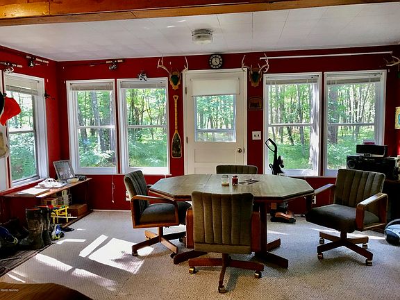 Great cabin or year round home in Manistee National Forest on five acres. Located just 1/4 mile from South Branch Pere Marquette River with public access and a short walk to federal land. There is ample wildlife including deer and bear. The home has nice gathering areas inside with open kitchen, dining and living rooms and outside with two decks and large campfire area. Property is largely wooded and is staked at corners. Enjoy newer well and septic, four foot deep concrete crawl space, paved roads, Ruby Creek grocery and bar nearby, quiet nights, and overall a great getaway space. It's 1 1/2 hours from Grand Rapids, 25 minutes from lake Michigan, and under an hour from Muskegon.