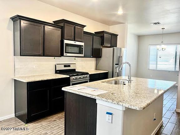Beautiful new construction! 3 bedrooms, 2 bathrooms, granite/quartz and marble countertops throughout the home....all tile flooring with satin nickel or chrome fixtures and door hardware. Soft water loop in garage, flat screen pre-wire, stainless steel appliances including refrigerator, roomy island with bartop seating, 2 inch faux wood blinds, built-in garage shelving, framed mirrors, beautiful barn door in the primary bedroom and more amenities like these make this home a little extra special! Approximately 1630 square feet...plenty of room for everyone! Take this opportunity to have a brand new home!