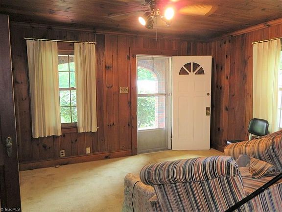 BRICK BUNGALOW w/great architectural design & solid construction. 2 bed, 1 bath main. 2 bedrms, office, 1 bath upper. Small bedrm & bath up not counted in heated sqft (no ducts). Front porch w/two entry doors. Dining w/views into spacious kitchen. Den w/rich paneled walls & ceiling. UL office w/built-in desk & shelves. Large living room with woodburn fireplace. New windows/gutters 2 yrs., Roof 3 yrs., HVAC approx. 5 yrs. 2 car detached garage. Appears to be some wood under carpet on main buyer to verify.