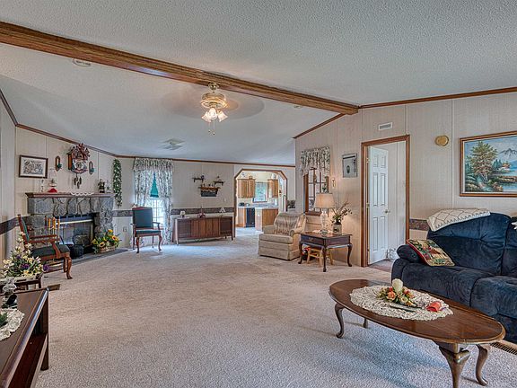 From the Ancient Trees to the Open Pastureland, this quiet country setting will be your private retreat! Spacious 3 bedroom 2 full bath home with a large 24x32 Detached Garage/ Shop and 40x50 Block Barn with 20x50 Lean-To, Farm Pond, Rolling Meadows, and room for all of your outdoor activities. The Park-like setting with its beautiful old Catalpa Trees, abundant wildlife and Circular Drive welcome you to this home. Inside, you'll find Triple Wide construction, with a large master suite with private bath and walk-in closet, 2 additional spacious bedrooms, a large Dining Room/ Family Room and Living Room with stone fireplace, and huge eat-in Kitchen with center island and abundant cabinetry. A separate laundry/ mudroom completes the home! The detached garage as space for a wood burner and is large enough for parking as well as a shop. The Barn is made of concrete block, has a tack/ Feed Room accessed by an exterior door, and room for 3-5 stalls plus a huge hay loft! Bale your own hay from the pasture ground! The Barn also features a nice lean-to. Perfect for Horse keeping, Home steading and those looking for wildlife! Recent Updates- Newer HVAC, New Roof 2025, 1 Year Home Warranty Provided by Seller.