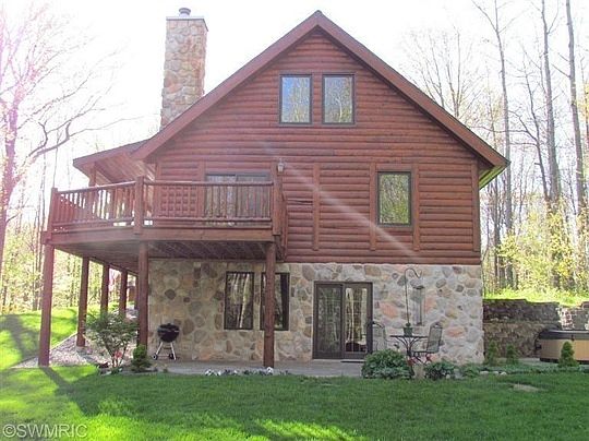 BREATHTAKING HAMLIN AREA FULL CEDAR LOG HOME. ROUND EXTERIOR - FLAT INTERIOR, WITH NO CHINKING... Wrap around Treck deck covered on the front. Kentucky Blue Stone front walk, side, and back patios. Beautifully manicured yard with irrigation, and seasonal plantings. Four bedrooms, two full, and two half bathrooms. The Master bedroom walks out onto a private side patio with a hot tub. The lower level family room has a beautiful fireplace with a built in blower. French doors take you outside to the Kentucky Blue Stone patio, and private backyard. New five inch well in 2013, New Anderson Windows on main floor in 2013, New roof in 2008. 5 acres of wooded Hamlin paradise. With an additional 10 acres adjoining land available.
