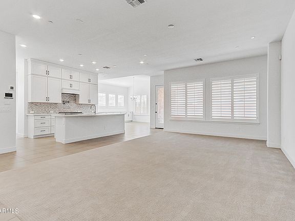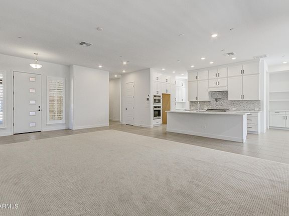 Single-level, energy-efficient home w/10' ceilings, large, picturesque windows & sleek 8' doors. Professionally designed with upgraded white shaker cabinetry, built-in wine rack, an oversized quartz island, walk-thru pantry w counters & shelving, GE Monogram appliances s/6 burner gas rangetop & wood hood vent, accent lighting, & custom tiled backsplash. Open-concept family room expands onto patio & oversized covered outdoor living area. Elegant custom tiling, a large walk-in His/Hers closet, & a tiled Super Shower w/secondary raincan showerhead, a freestanding tub for relaxing after a long day & upgraded quartz countertops w/dual sinks highlight the spa-inspired bath; 2-ton paint & upgraded carpeting throughout; new home warranty