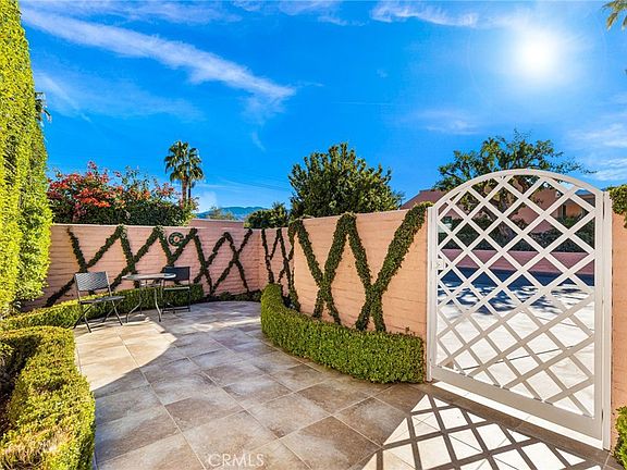 Welcome to Marrakesh Country Club, the Jewel of the Desert. Marrakesh is a boutique golf community designed by renowned Hollywood architect, John Elgin Woolf. This beautifully upgraded traditional 2 bedroom, 2 bath home is a perfect example of sophisticated elegance. It has new floor to ceiling sliders across the spacious living and dining rooms opening up to a terrace over-looking a private greenbelt with an abundance of trees. The open living room and Dining room is light and bright complete with 10 foot ceilings, fireplace, hardwood floors and custom drapes. The gourmet kitchen has lots of counter space and new top of the line appliances. The primary suite is very spacious and has a large walk-in closet and a gorgeous new bathroom. Your guests will never want to leave the large guest suite complete with a den and newly remodeled beautiful bathroom. New HVAC, new outdoor lighting, and new washer/dryer. Too many upgrades to list. Must be seen. Located directly across the street from one of the 14 community pools and spas. Brand new spectacular Club House will be opening in the 1st Quarter of the year and the golf and social events calendar is action packed for a fun and busy season. Come and Experience the Magic of Marrakesh !
