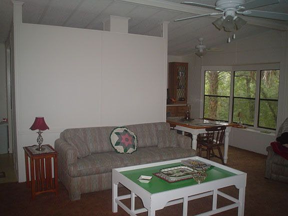 Lake front property in the Ocala National Forest. This 1.72 AC parcel with a very nice 2 Bedroom 2 bath manufactured home. A metal roof has been installed as well as a newer water heater. Plenty of storage in the dining area, hall closets, and the kitchen. There is an inside laundry room dedicated for storage, electric water heater, a closet and still large enough for your washer and dryer. The entire home has been re-plumbed. The evenings on the back screened porch offer beautiful sunset views and plenty of wild life in the area. Don't wait on this property.