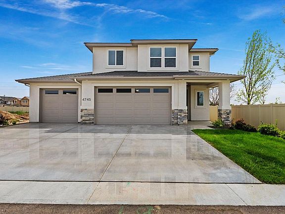 This Rainier plan built by Tresidio Homes offers a spacious and well-designed layout. The kitchen is lined with shaker style cabinets to the ceiling in a light Driftwood color providing a timeless look. High-quality finishes such as stainless-steel appliances, quartz countertops in the kitchen, hardwood flooring on the main level adding warmth and elegance. The Gas fireplace in the great room is surrounded by a beautiful stone. The Primary suite features a floor to ceiling tile shower, quartz countertops, double vanity on top of shaker style cabinets and a roomy walk-in closet. Two more generously sized bedrooms can be found upstairs that share a full bathroom with an oversized bonus area. The stucco exterior with stone accents adds curb appeal, while the covered patio provides a pleasant outdoor space. Overall, this two-story home offers a well-designed layout with space for everyone. Pics are of actual home.