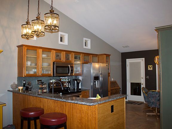 High style, optimal location and easy entertaining! Offering more than a wonderful open floor plan, this home has been carefully maintained with many upgrades (granite, glass front cabinets and flooring). Impressive kitchen, hardwood laminate throughout, newer tile in the entryway, both bathrooms and laundry. Newer light fixtures, bathroom fixtures and hardware. Low traffic street, walk to neighborhood park, pool and new dog park ''coming soon.'' The fenced backyard with walkout patio, charming pergola with market lights, privacy fence and raised garden beds is the perfect size. Two car garage and fantastic location. ''Rare find'' could not describe this home better.