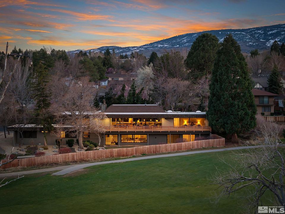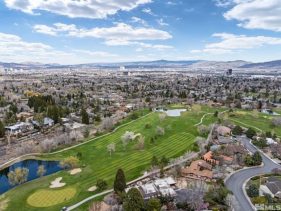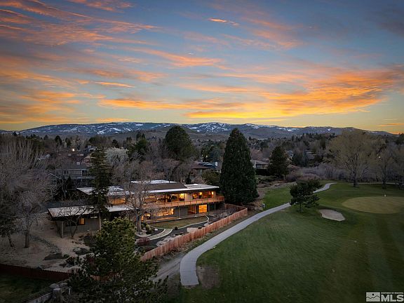Welcome to a true masterpiece, crafted by renowned architect, in coveted Old Southwest Reno. This luxurious sanctuary is just minutes away from vibrant midtown & downtown Reno, as well as shopping, dining, and entertainment. As you meander down the long tree-lined driveway with ample parking a hidden gem emerges. Spanning 5817 sq ft across three levels, this grand estate overlooks the finest hole (7th) on Lake Ridge Golf Course., Every room boasts panoramic views of the golf course against the stunning city skyline backdrop, with serene ponds and graceful weeping willows adding to the enchanting scenery. Step into a world where elegance and entertainment harmonize seamlessly in this Mid-Century Modern escape, meticulously designed to exude sophistication at every turn. Delight in hosting lavish soirées in the lower level's full sunken bar, or savor cozy evenings by the fire after watching the kids sled the golf course. Revel in luxury with multiple fireplaces, an open-concept layout, and abundant space for hobbies, guests, or large families. The main-level master bedroom offers a serene retreat with custom walk-in closets, a luxurious walk-in shower, and a private patio as well as main deck access. Recent renovations include new wood-look tile flooring throughout, a brand-new deck, fresh interior and exterior paint, a durable 40-year roof, and a modern rejuvenated geothermal system (running both heat and hot water throughout). Boasting 5 bedrooms, xeriscape landscaping, a convenient dog run, and direct access to the golf course, this property stands as a rare gem in a league of its own. Opportunities to own legacy homes like this are few and far between, so seize the chance to embrace a lifestyle of exclusivity and refinement in this extraordinary estate. Buyer's agent are responsible for notifying their clients that there may be listening and recording devices on the property, please consider this your formal notice, and ensure your clients are notified prior to entering the property. All information provided to be verified by the buyer and buyers agent. Final walk through constitutes satisfaction with information supplied herein and satisfaction with condition of the property as well as any completed repairs (if any). Seller will not close escrow until a signed final walk through or waiver has been received.