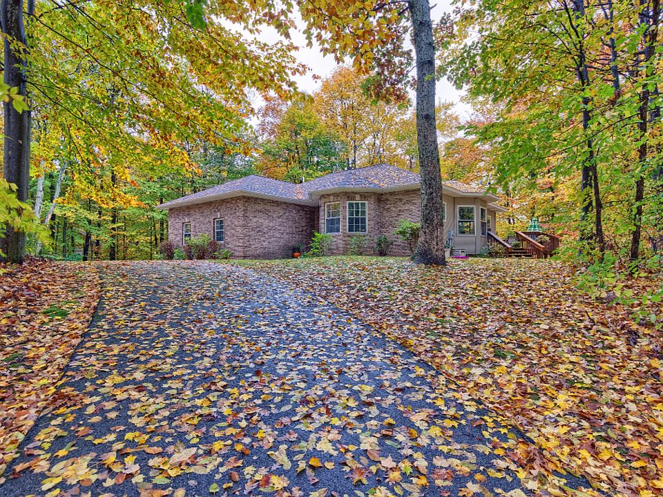 Step inside this quality built ranch nestled in the woods. Best of everything, quiet tranquil setting yet close schools and shopping less than 30 minutes to Grand Rapids. Open floor plan and cathedral ceilings gives spacious feeling and allows good flow from kitchen to living room. Living room with gas fireplace has rear location and sliders opening up to wrap around deck for outside entertaining. Full walkout basement with 2 bedrooms and full bath plus huge recreation room with slider to kids play area and storage shed. Call for appointment today.