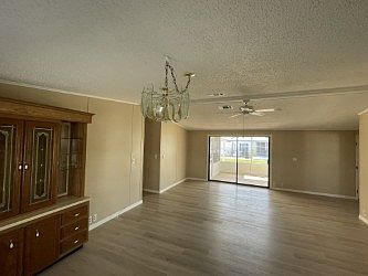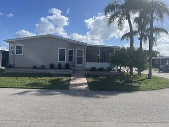 Move in ready manufactured home located in a 55+ community. This spacious 2 bedroom 2 bathroom home features an open concept layout with lots of natural light, new flooring throughout, with an inviting atmosphere. The kitchen offers plenty of cabinetry with wraparound countertops. The large living and dining area opens to a screened in lanai providing extra space. You'll find a covered carport, tidy landscaping and a shed for additional storage. Residents enjoy access to community amenities like a clubhouse, pool, and social activities. Conveniently close to shopping, dining, medical centers, and just a short drive to local beaches. Contact us today to schedule your tour today!