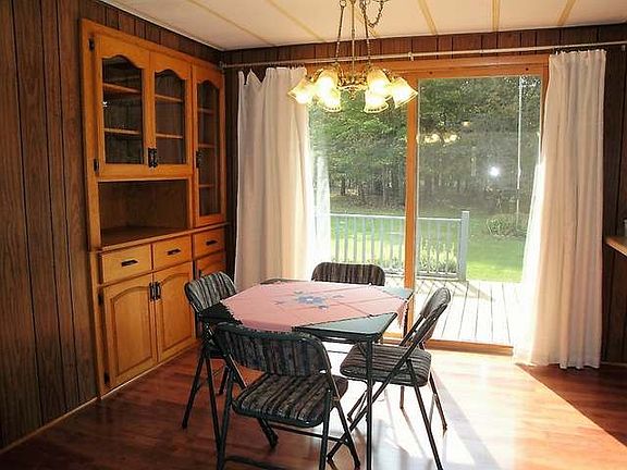 This affordably priced Rhinelander Flowage home would make an excellent year-round residence or vacation getaway. It offers main level living on almost an acre of land. The blacktop & gravel driveway leads to an oversized 2-car garage which is attached to the home by a three-season breezeway with patio doors to the front & back yards. A spacious living room with wood-burning fireplace & newer picture window overlooks the expansive deck & river views. The kitchen was updated from the original & includes appliances & laundry. The adjacent dining area has a custom, built in buffet & a patio door leading to the front deck. Three bedrooms & a full bathroom are down the hall. The level lot is nicely landscaped & has 120'+/- of river frontage, providing access to the Rhinelander Chain of Lakes & over 1300 acres of recreational opportunities including fishing, boating & snowmobiling. A pier, lean-to, & a basic home warranty are included. River frontage is estimated.