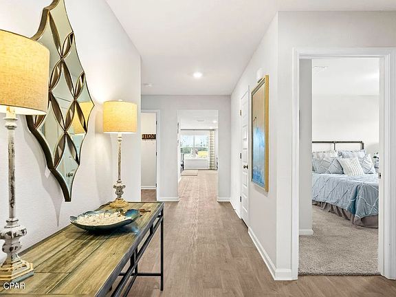 Welcome to Titus Park! The Cali floor plan features 4 bedrooms with one that can be used as a den or office. This home features quality paint with orange peel textured walls and traditional 8' ceilings. Vinyl flooring is throughout all common areas of the home and carpet is in the bedrooms. The kitchen is open and spacious with a center island and includes a pantry, beautiful stained cabinetry and durable laminate countertops. The appliances include a dishwasher, stove and microwave. Bedroom 1 has a nice sized bath with a separate shower, large soak tub, as well as a large walk-in closet. Centrally located off Highway 390 & just north of Highway 231, Titus Park is surrounded by a multitude of shopping centers, restaurants, and is only minutes from the North Bay and Saint Andrew's Beaches. This home comes standard with a Smart Home Technology package which includes a KwikSet keyless entry, Skybell doorbell, automated front porch lighting, an Echo Dot device, and Quolsys touch panel which can be integrated to control your lighting, thermostat, front door and so much more. This home is being constructed with the Zip Sheathing system, providing greater protection than a traditional housewrap from damages due to wind, rain, and extreme weather. A builder 10-year structural warranty is also included. Owner covers trash pick up. Renter will pay all utilities.