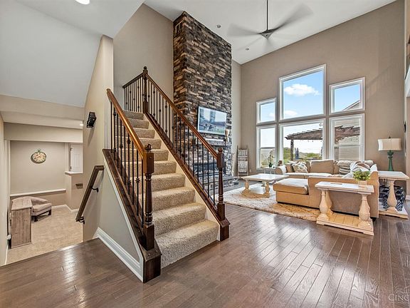 Absolutely gorgeous over 4,000 sq ft. home with too many upgrades to list. Stone & Brick front with large front porch, 3 car garage, paver stone custom patio with firepit & gazebo.Open flrpln, 9' ceilings on all levels including lower. Wall of windows, beautiful gas fpl, Quartz counters, custom huge walk-in shower, 3 full baths,lower level plumbed for wet bar. 3 floors of living space plus full lower level! Exclude TV & Bracket on stone fireplace mantle.