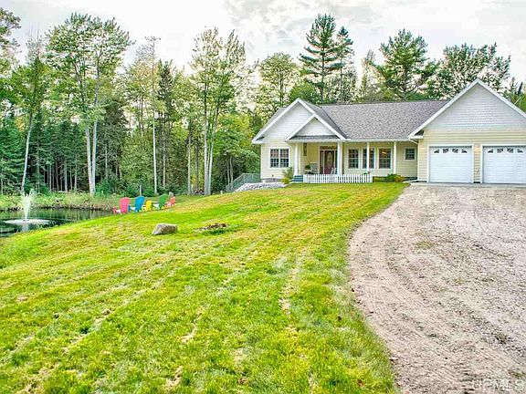 Built in 2007, this gorgeous 3 bedroom 2.75 bath ranch is situated on 52 acres offering an experience second to none. There are so many areas both inside and outside of this beautiful home to relax and observe all that nature has to offer. Enjoy your morning coffee in your favorite rocking chair on the front porch watching the sun rise above the trees, or in the evening watching the wildlife around the pond. The large wrap around deck offers a very sunny south facing area where you can lounge during the day, listening to the creek flowing past and the waves crashing with beautiful views of Lake Michigan. Continue around the deck while watching Marblehead Creek where you can entertain guests, while dining outside. At the far end, there is a screened in pergola to relax in the evening that includes the enclosed hot tub area. You can even sit by the walk out basement in the shade while watching for the salmon or smelt swim upstream. Or enjoy a bonfire on the banks of the creek and watch the colors of the sunset. This property boasts a unique 16 x 24 foot heated greenhouse, lovingly built by the owners themselves. Not only is this perfect for your green thumb, it provides hours of entertainment watching the deer stroll by right outside the windows on their way to the woods. You will have no shortage of storage with the full basement, attached garage, and detached 30x40 garage. Wildlife abounds for the hunter, and there is plenty of room for trails to be improved for hiking, snowshoeing or cross-country skiing.