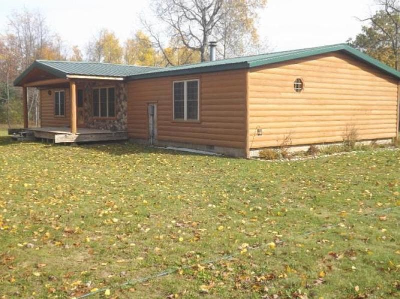 This is a great family property, 21 acres of woods, trails, wildlife pond, you'll see deer, eagles and etc.. This is a manufactured home that has been completed updated, log siding, stone trim, metal roof, all knotty pine interior, fireplace, great workmanship throughout and very secluded yet easy access from M-65 Hwy. New appliances. Only a short distance to McCollum Lk, an all-sports, family enjoyable lake or down McCollum Lake Rd. and across M-72 into 1,000's of acres of St. and Nat'l land down to McKinley and the AuSable River. This is a must see home and property to appreciate it's value. Will be setting an open house date.