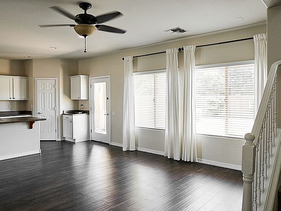 Beautifully maintained cul-de-sac home on oversized lot with upgraded wood laminate flooring and low maintenance landscaping featuring artificial lawn, extended covered paver patio, natural gas BBQ hook up, fire pit. Kitchen features white cabinets with gold hardware. All appliances included. Gas stove/oven and walk in pantry for the home chef. Space for seating at kitchen island with adjacent area to be used as formal dining area or office/playroom. Powder bath downstairs for guests. Under stairs closet and ample storage for seasonal decor. Three bedrooms, loft, all on upstairs level along with 2 full bathrooms. Spacious laundry room conveniently located upstairs. Rental includes Whirlpool washer and dryer. Master walk in closet has a window and built ins with additional shoe shelves. Bella Via homeowner’s association maintains multiple kids playgrounds, green spaces, fenced “Bark Park” dog park, outdoor fountain and amphitheater. Community events throughout the year.