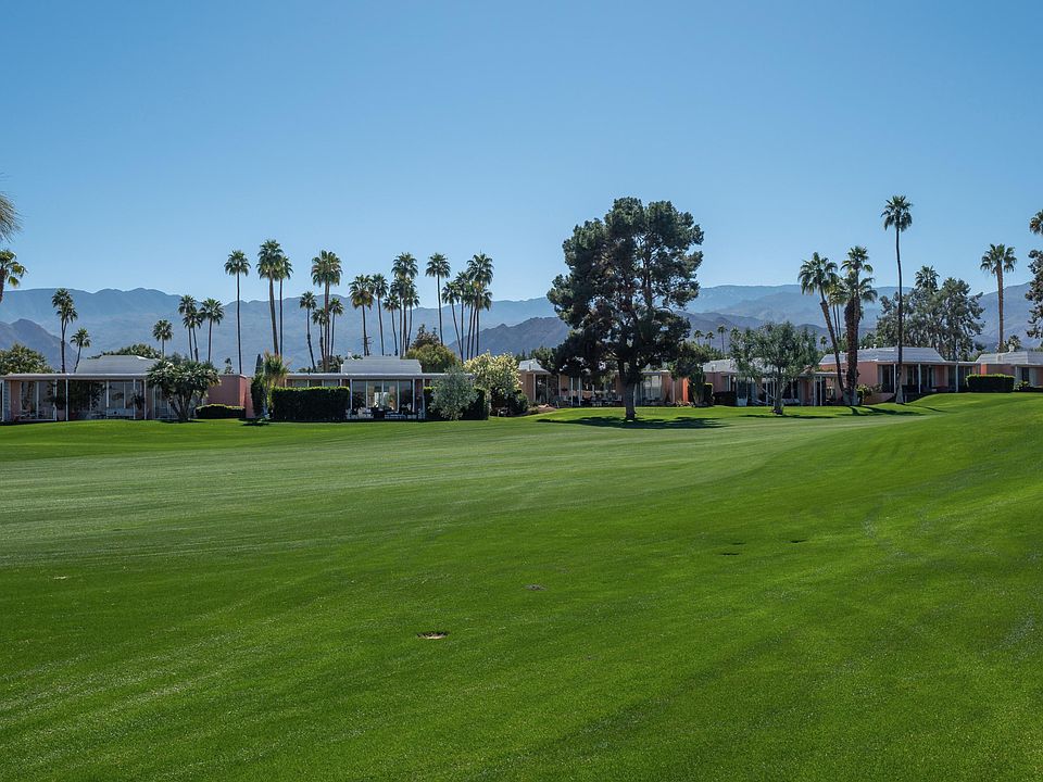 Nestled in the iconic Marrakesh Country Club this 2BR/2BA villa is surrounded by BREATHTAKING VISTAS of the Santa Rosa Mountains and the gorgeous golf course. It offers perhaps the very best location in the club and is a MUST SEE for buyers looking for a home they can improve and make their own. This wonderful home features welcoming interiors with an abundance of natural light and walls of glass opening to an amazing South facing expanded terrace. The large Master Suite offers a generous walk-in closet space and the en-suite bathroom with a soaking tub, shower stall, and a sizable walk-in linen closet. Newly paved driveway, newer HVAC and a new roof (2017) are among other valuable features of this home. Situated close to the clubhouse on a very quiet and highly sought after Medina Drive with plenty of guest parking and the sparkling community pools right across the street. Marrakesh is known for its timeless Hollywood Regency architecture, unparalleled views, and meticulous landscaping. Club amenities, including a challenging 18-hole executive golf course, 14 pool pavilions, tennis, fitness and a clubhouse with spectacular views of the golf course and the San Jacinto Mountains.